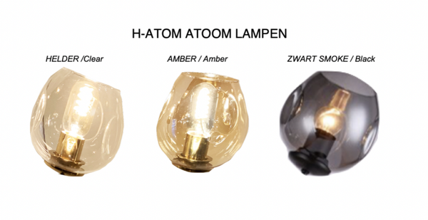 Bij de P-ATOM lamp zijn verschillende uitvoeringen mogelijk. Je kunt hier kiezen uit de frame-kleuren: Zwart, Messing of Nikkel. Tevens heb je ook nog de mogelijkheden om de kleur van het glas zelf te bepalen. Ga jij voor de kleur Amber, Smoke of Helder?