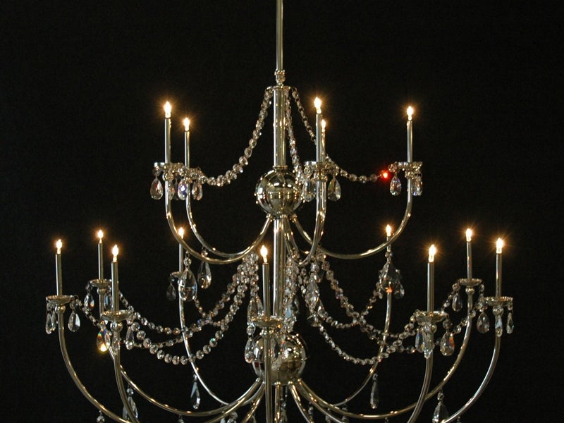 TAGS : Modern Classic Videlamp op maat ROND 15 lichts 2 etages Glamour Kristal Kniestuk schuin plafond